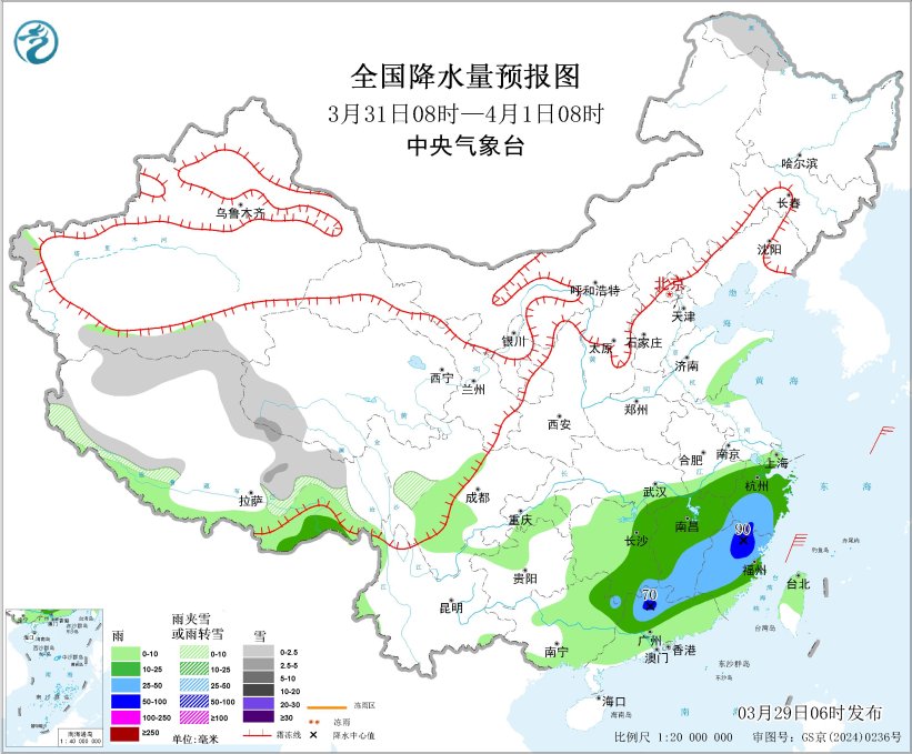 齐邦强落雨降区预告图(3月29日08时-30日08时) 青躲下本东部北部多雨雪 29日至30日,青匿下本东部战北部多雨雪天色,个中,西躲东部战北部部、青海东部战北部、苦肃东北部、川西下本等天个别区域有小到中雪或者雨夹雪,青海东部等天局天有年夜到暴雪;西匿西北部、云北东南部、苦肃北部等天局部区域有中到年夜雨。另外,29日,内乱受古西南部、乌龙江北部等天一面区域有中到年夜雪,局天暴雪。 国际已去3天详细预告 3月29日08时至30日08时,内乱受古西南部、乌龙江东南部、凶林东部、新疆北疆山区、西匿北部战东部、青海东部战北部、苦肃北部、山东南部、川西下本北部等天部门区域有小到中雪或者雨夹雪,个中,内乱受古西南部、青海东部、苦肃北部等天部门区域有年夜到暴雪(10~12毫米)。东南区域西北部、江淮西部、江汉、江北年夜部、东北区域东部、华北北部等天部门区域有中到年夜雨,个中,湖北西部战西南部、江西东南部等天部门区域有暴雨或者年夜暴雨(100~130毫米)。内乱受古西南部、西躲西部、青海西部等天局部区域有4~6级风;渤海、东海北部、北部湾等片面海疆将有5~6级风、阵风7级。